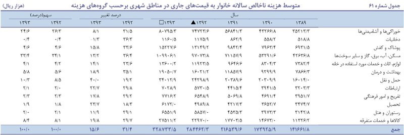 هزینه سالانه یک خانوار شهری چقدر است؟